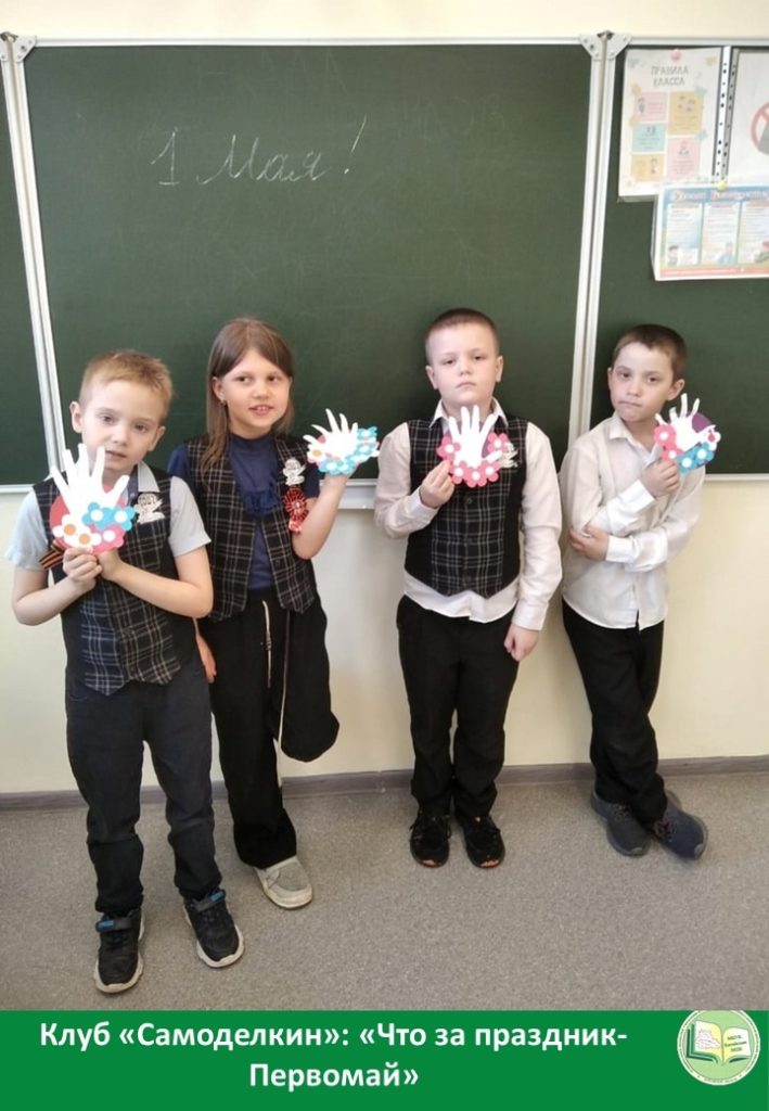 28 апреля прошло выездное занятие клуба «Самоделкин» для ребят, посещающих группу продленного дня СОШ №2. Наша встреча была тематической, так как состоялась в преддверии государственного праздника 1 мая — Праздника весны и труда. Сотрудник читального зала детской библиотеки рассказала детям об истории возникновения праздника, традициях празднования и символах этой даты…