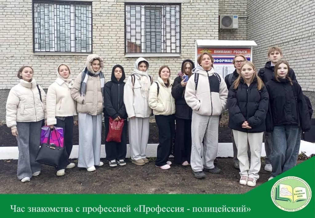 В рамках работы по профессиональной ориентации молодежи, с учащимися 10 «Б» класса КСОШ №1 прошел час знакомства с профессией «Профессия — полицейский». Специалист центральной библиотеки Шуплецова Н.А. и классный руководитель 10 «Б» класса Сафронова Ю.Е. организовали встречу с сотрудниками правоохранительных органов.