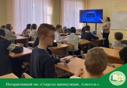 13 ноября для обучающихся 8 «Г» класса КСОШ№1 состоялся интерактивный час «Секреты манипуляции. Алкоголь».