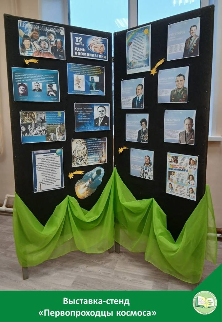 Детская библиотека предлагает своим читателям выставки: «С книгой вокруг Земли», «На звездных орбитах»; выставку-стенд «Первопроходцы космоса»…
