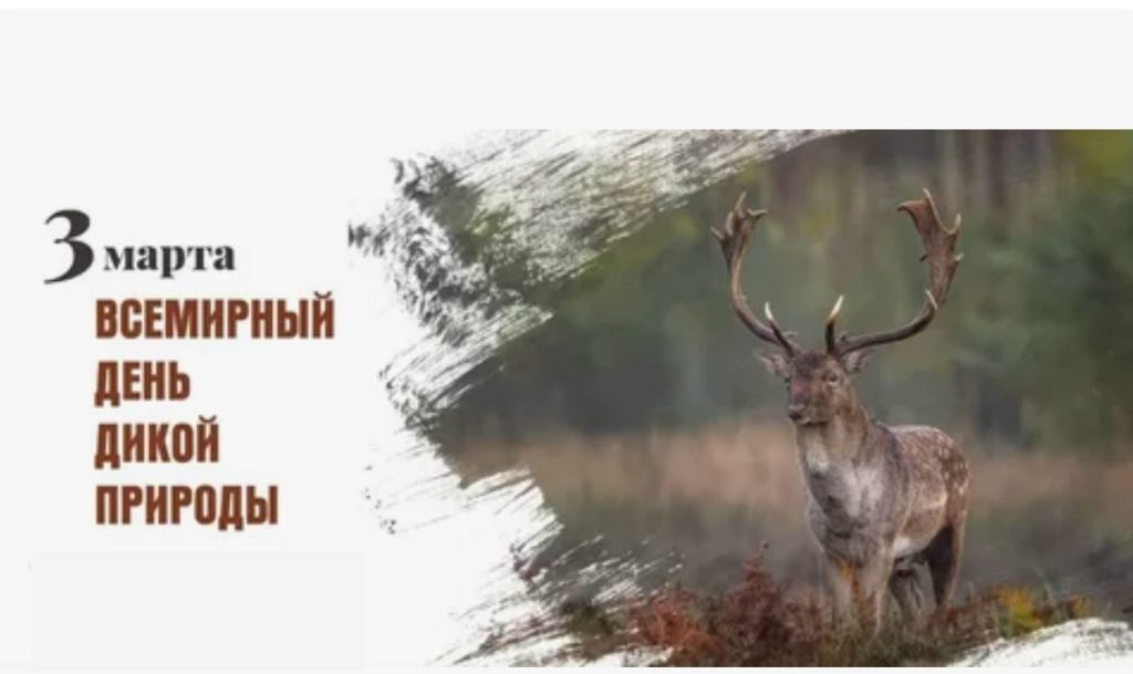 Ежегодно 3 марта отмечается экологический праздник Всемирный день дикой природы, учрежденный Генеральной Ассамблеей ООН в 2013 году. А созданный официальный логотип Всемирного дня дикой природы, был переведен на 6 официальных языков…