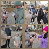 Сотрудники детской библиотеки и юный волонтер вышли на улицы города, чтобы рассказать его жителям об этом празднике, вручить его символ – белого журавля, сделанного из бумаги своими руками и информационные памятки об истории праздника.